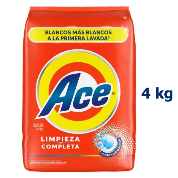 Detergente en Polvo Ace Limpieza Completa Bolsa 4 Kilos
