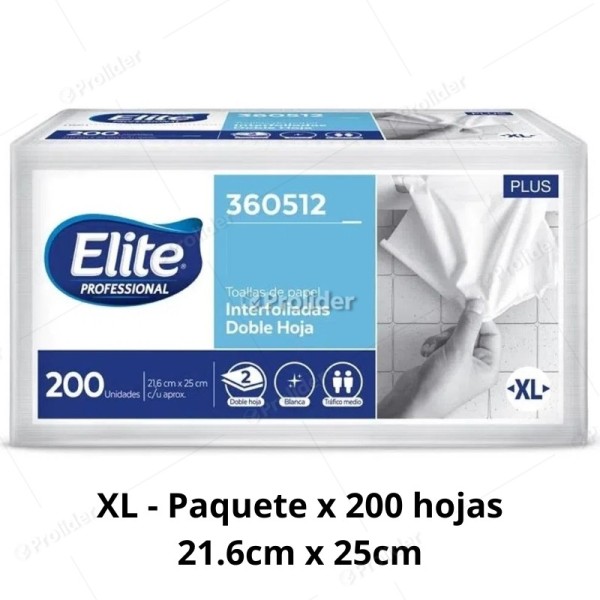 Paquete Papel Interfoliado Elite XL Blanco x 200 unidades 361530