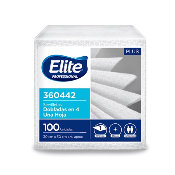 Paquete Servilletas Blancas Elite Dobladas en 4 x 100 unidades (30 x 30 cm)