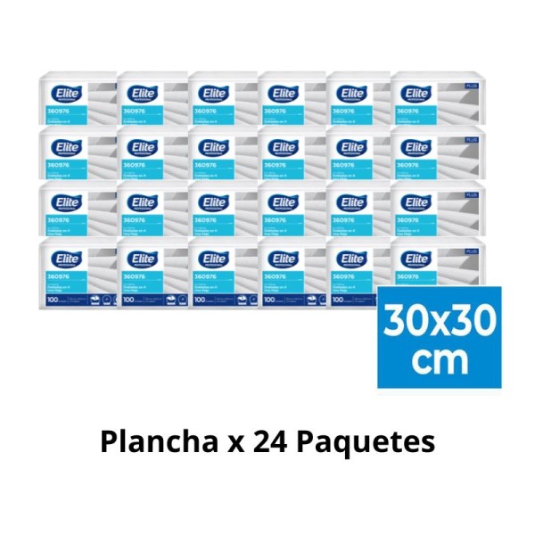 Servilletas Blancas Elite Dobladas en 4 x 24 Paquetes de 100 unidades (30 x 30 cm)