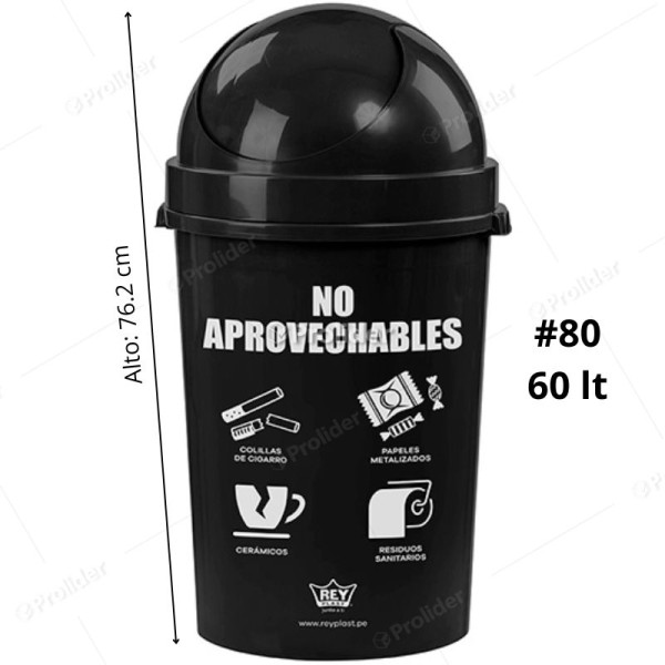 Papelera Vaivén Reyplast Cosmos Redondo N°80 de 60 Litros Negro (No aprovechables)